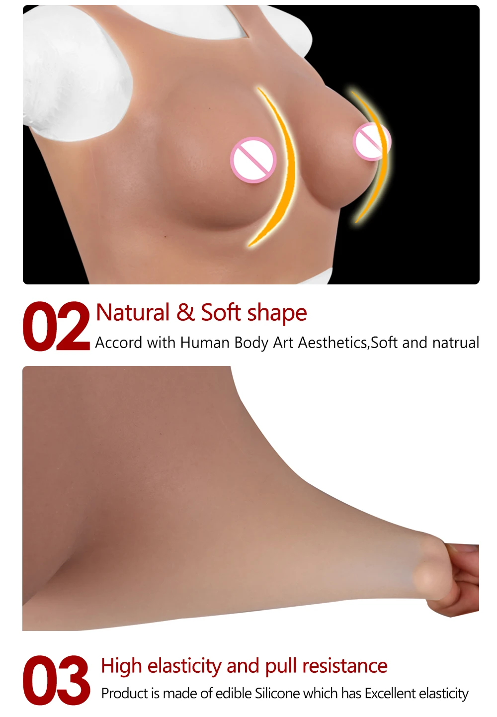 H Cup No Collar Silicone Breast Forms Crossdresser Crossdressing Fake Boobs for Transgender Fake Breast Plate Fake Tits
